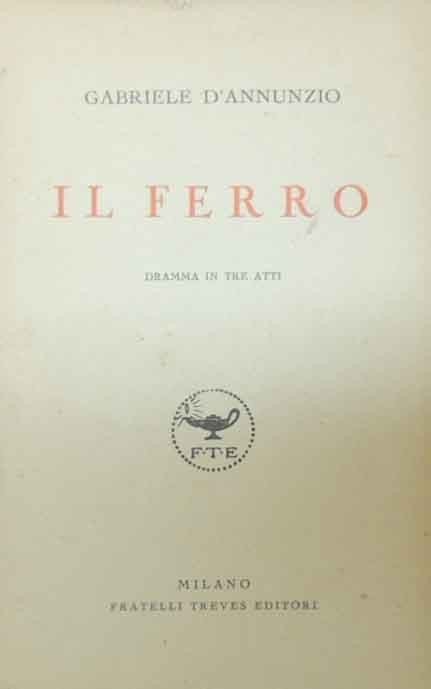 Gabriele D’Annunzio, Il ferro. Dramma in tre atti, Fratelli Treves Editori, Milano 1927, pp. 200, cm 19, br. ed. Minime tracce d’uso al dorso, per il resto molto ben conservato.