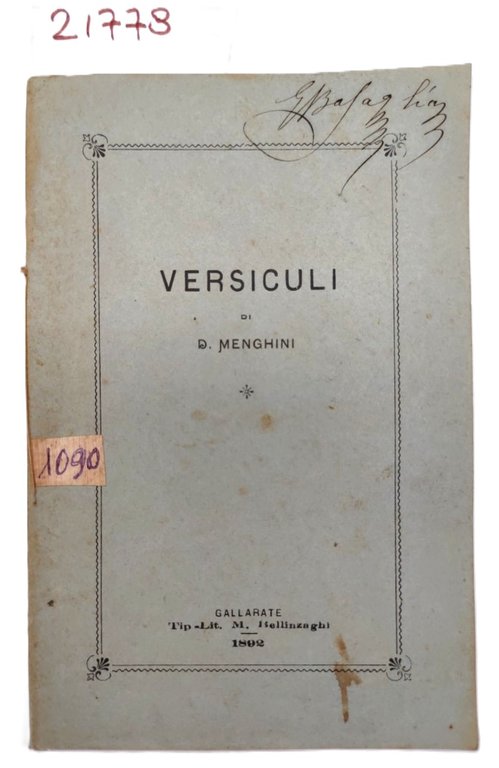 D. Menghini Versiculi Tip.-lit. M. Bellinzaghi 1892 autografato