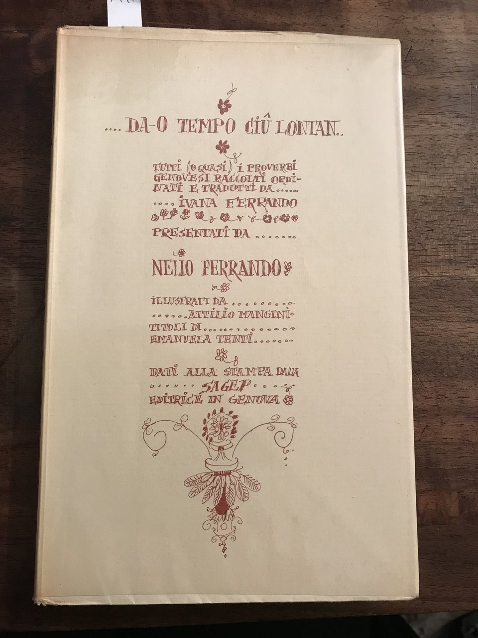 . Da-o tempo ciu lontan . Tutti (o cuasi) i proverbi genovesi raccolti ordinati e tradotti da Ivana Ferrando, presentati da Nelio Ferrando e illustrati da Attilio Mangini
