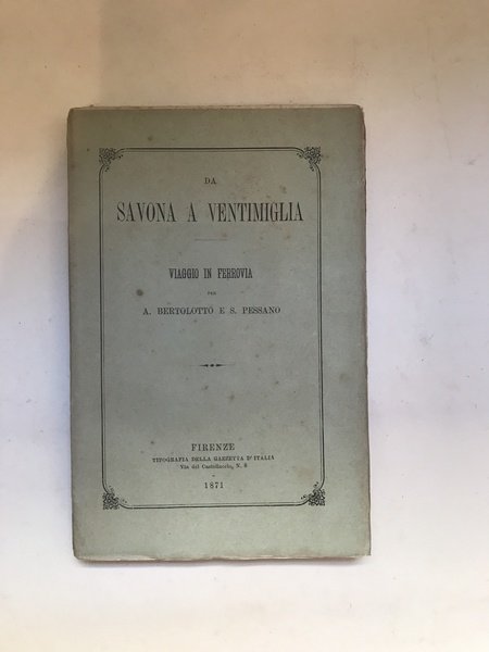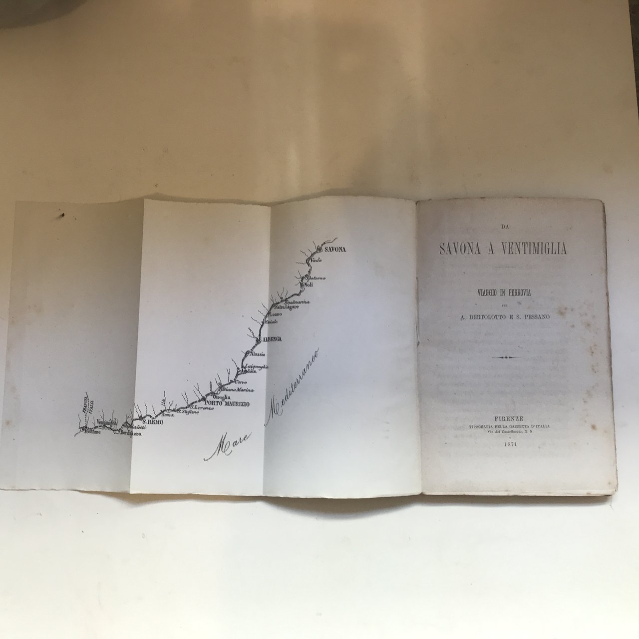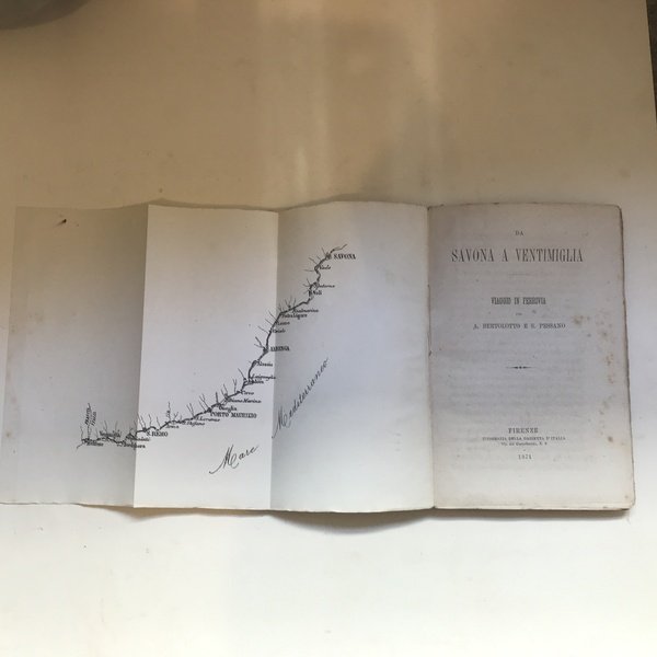 In-8°, pp. X, 185, (2), in antiporta una carta rip. con il percorso della ferrovia, brossura editoriale con mancanze al dorso e privo del piatto inferiore. Tracce di nastro adesivo al piatto superiore.
