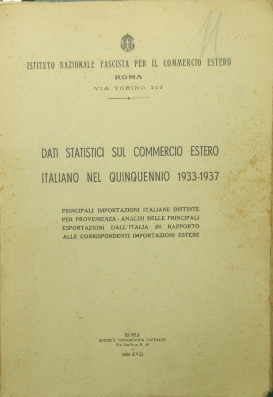 Dati statistici sul commercio estero italiano nel quinquennio 1933-1937 | Rare and modern books | Istituto Nazionale Fascista Per Il Commercio Estero
