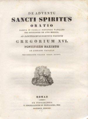 De Adventu Sancti Spiritus. Oratio habita in Sacello Pontificio Vaticano ad Sanctissimum Dominum Nostrum Gregorium XVI Pont. Max. ab Ambrosio Manahan.