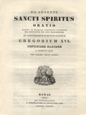 De Adventu Sancti Spiritus. Oratio habita in Sacello Pontificio Vaticano ad Sanctissimum Dominum Nostrum Gregorium XVI Pont. Max. a Georgio Saab.