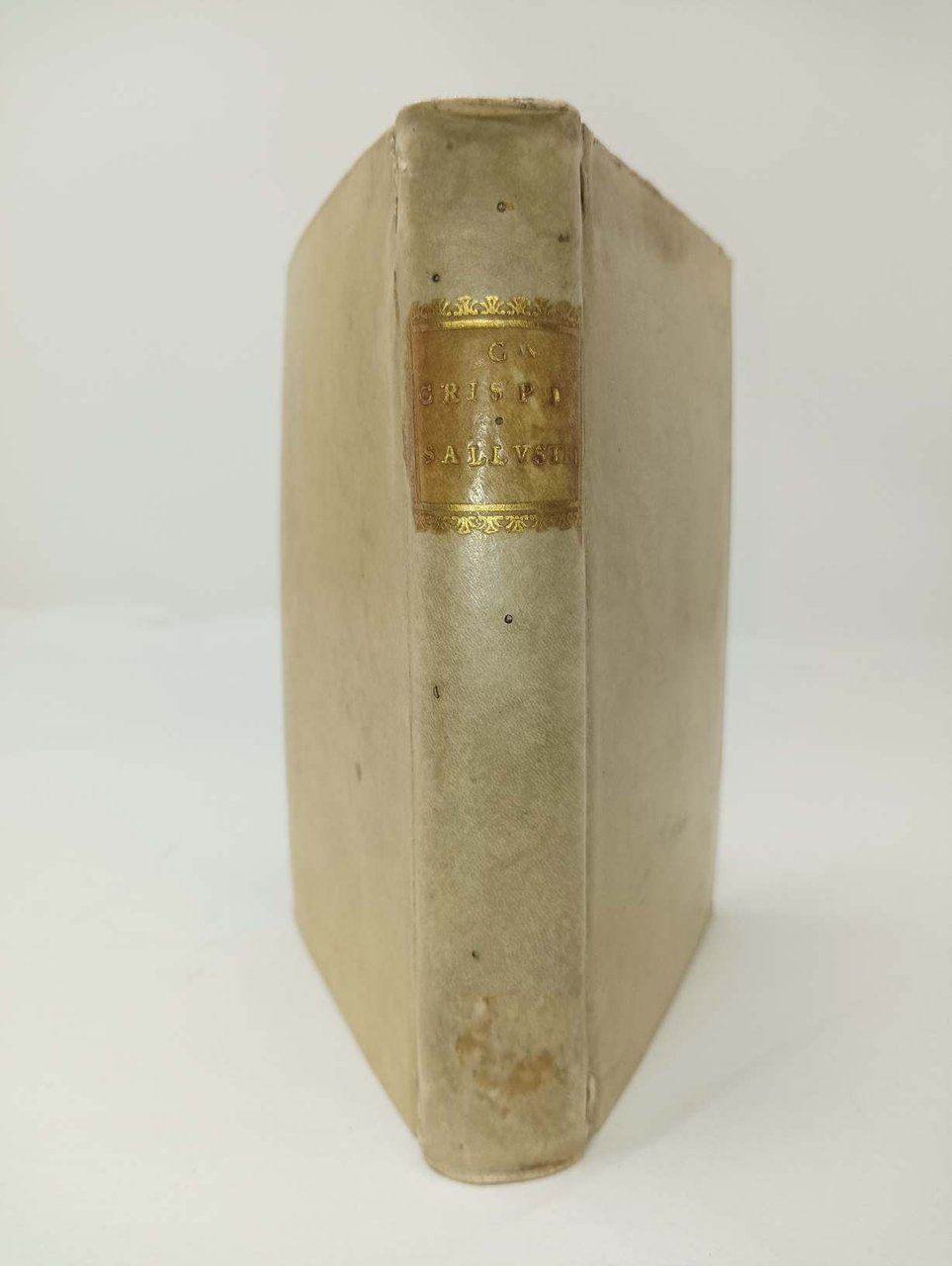 >in-8 (150x91 mm), pp. (16), 279, (1), legatura settecentesca in pergamena, titolo in oro al dorso, tagli rossi. Ancora aldina sul titolo ed in fine, spazi con lettera-guida per le iniziali. Lettera-dedicatoria di Aldo a Bartolomeo Alviano, uomo d'armi al servizio della Serenissima, protettore di dotti e letterati. Alle opere di Sallustio fanno seguito da pag. 160 alcuni scritti di Cicerone (''Oratio contra C. Crispum Sallustium'', di falsa attribuzione, e le ''Orationes quatuor contra Lucium Catilinam''), di Marcus Porcius Latrus (''Declamatio contra Lucium Catilinam'') e dello stesso Sallustio ''Orationes quaedam ex libris historiarum''.
