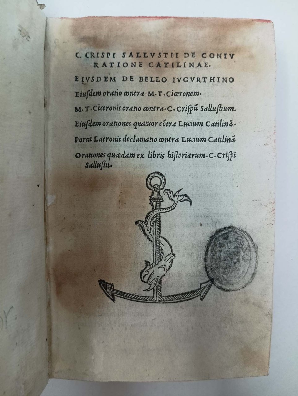 De coniuratione Catilinae. De bello Iugurthino. Oratio contra M.T. Ciceronem...(Ed. Aldus Manutius).