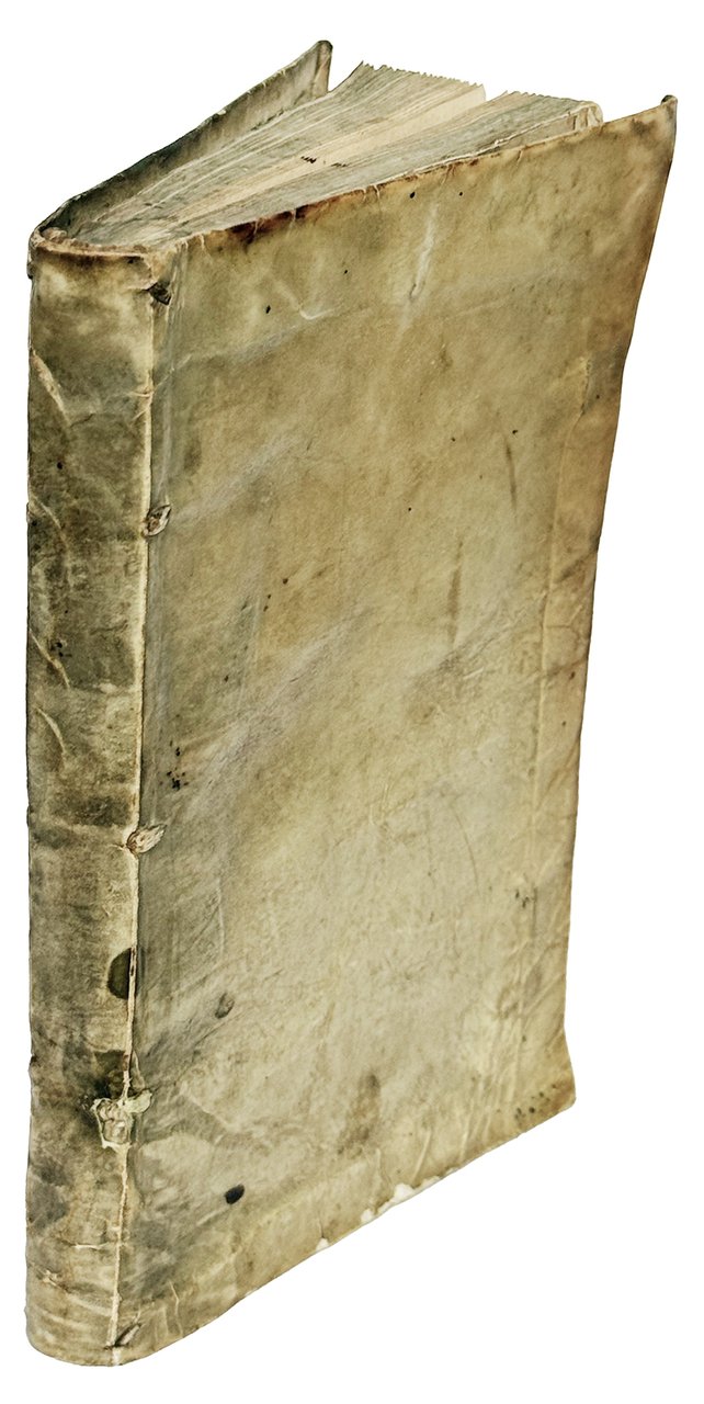 8vo (158x99 mm). 215, [5], [4 blank] pp. Collation: A-O8. Printer's device on title page and at the end. Colophon on l. O6v. Contemporary limp vellum (spine discoloured, front inner hinge split). A few occassional underlignings in text, contemporary manuscript note on the back pasetdown. Slightly uniformly browned. A very good, genuine copy.