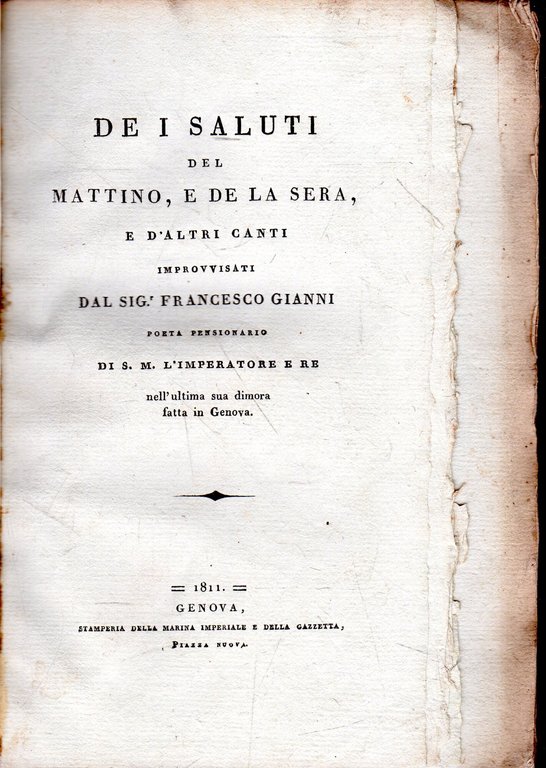 "Improvvisati dal Sig.r Francesco Gianni poeta pensionario di S. M. l'imperatore e re nell'ultima sua dimora fatta in Genova".