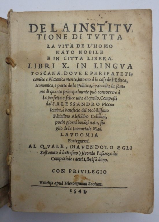 DE LA INSTITUTIONE DI TUTTA LA VITA DE L'HOMO NATO NOBILE E IN CITTA' LIBERA. Libri X.