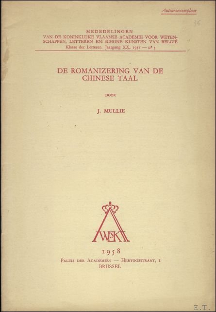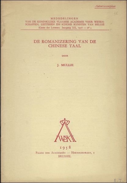DE ROMANIZERING VAN DE CHINESE TAAL, | Rare and modern books | Mullie, J.