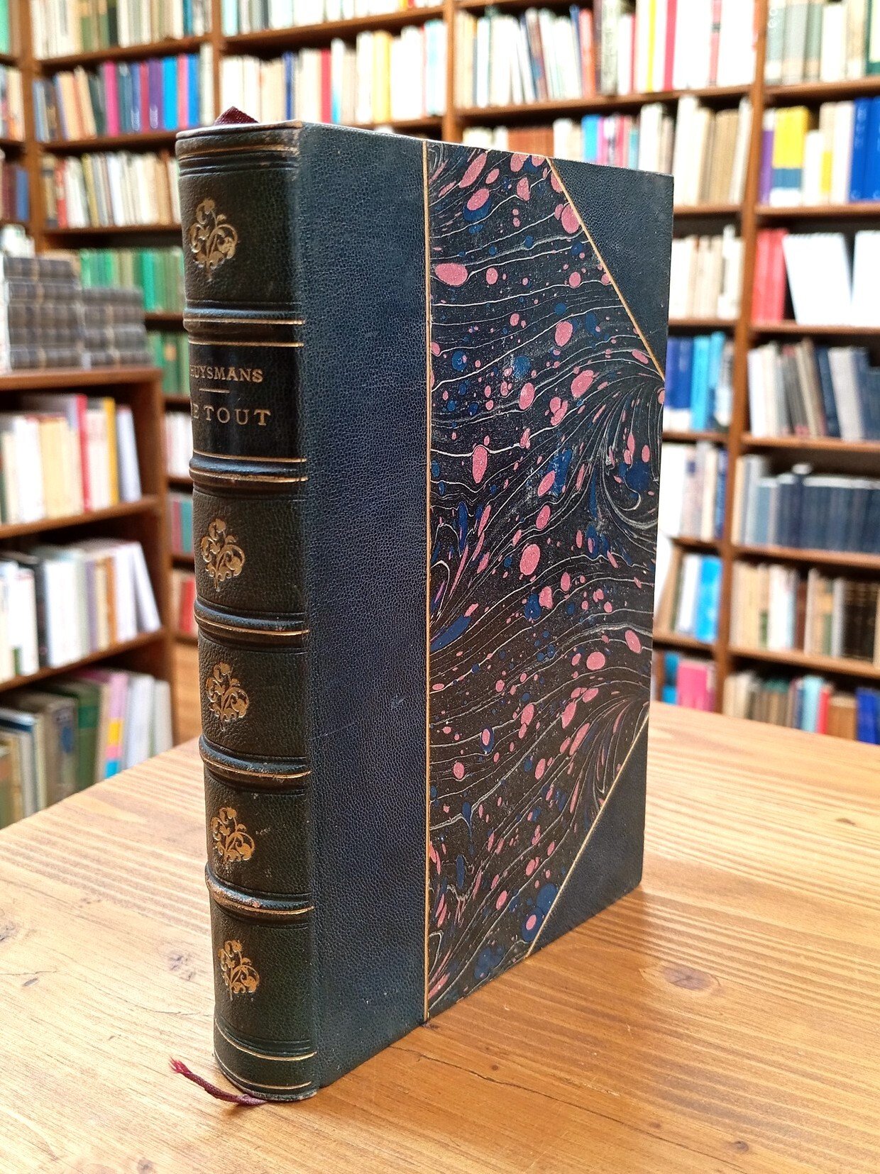 Seconda edizione originale / Deuxième édition - Volume in bella legatura artigianale a mezza pelle con titolo e fregi in oro al dorso, 316 pagine con testatine incise. Bella etichetta di ex libris al foglio di guardia anteriore. Conserva all'interno un ampio ritaglio di giornale italiano del 1936, con un articolo a firma Pànfilo dal titolo "Simbolisti, e altri poeti, in vetrina". Ordinaria scoloritura al dorso causa luce solare, peraltro esemplare in eccellente stato di conservazione, paginazione fresca e legature ben salde.