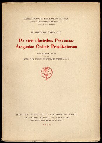 De Viris Illustribus Provinciae Aragoniae Ordinis Praedicatorum. Estudio preliminar y edición de Fray José María de Garganta y Fábrega.