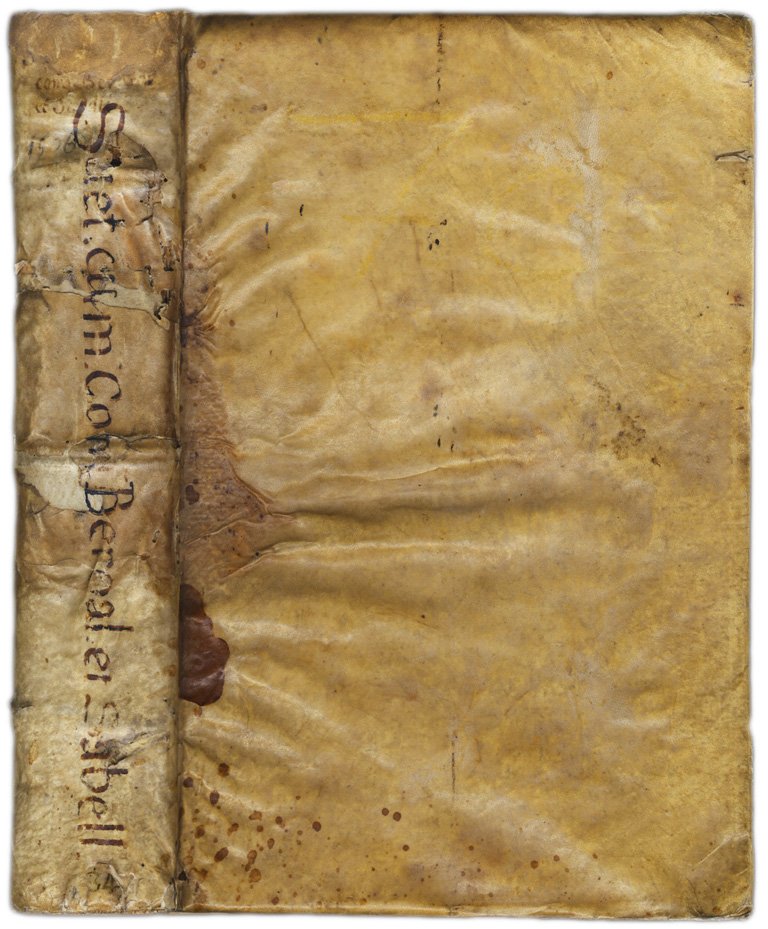 >in-folio, ff. (4), 358 (la numerazione comincia dal f. 17). Legatura coeva in piena pergamena, titolo calligrafico al dorso con cuffia abilmente restaurata. Testo in carattere romano racchiuso dal commento in carattere più piccolo; grandi e piccole iniziali silografiche ornate su fondo nero.
