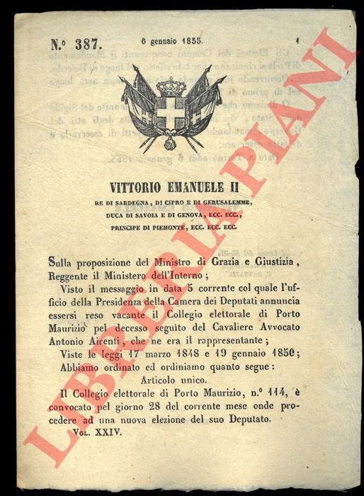 Decreto che convoca il Collegio elettorale di Porto Maurizio per procedere alla nuova elezione del suo Deputato.