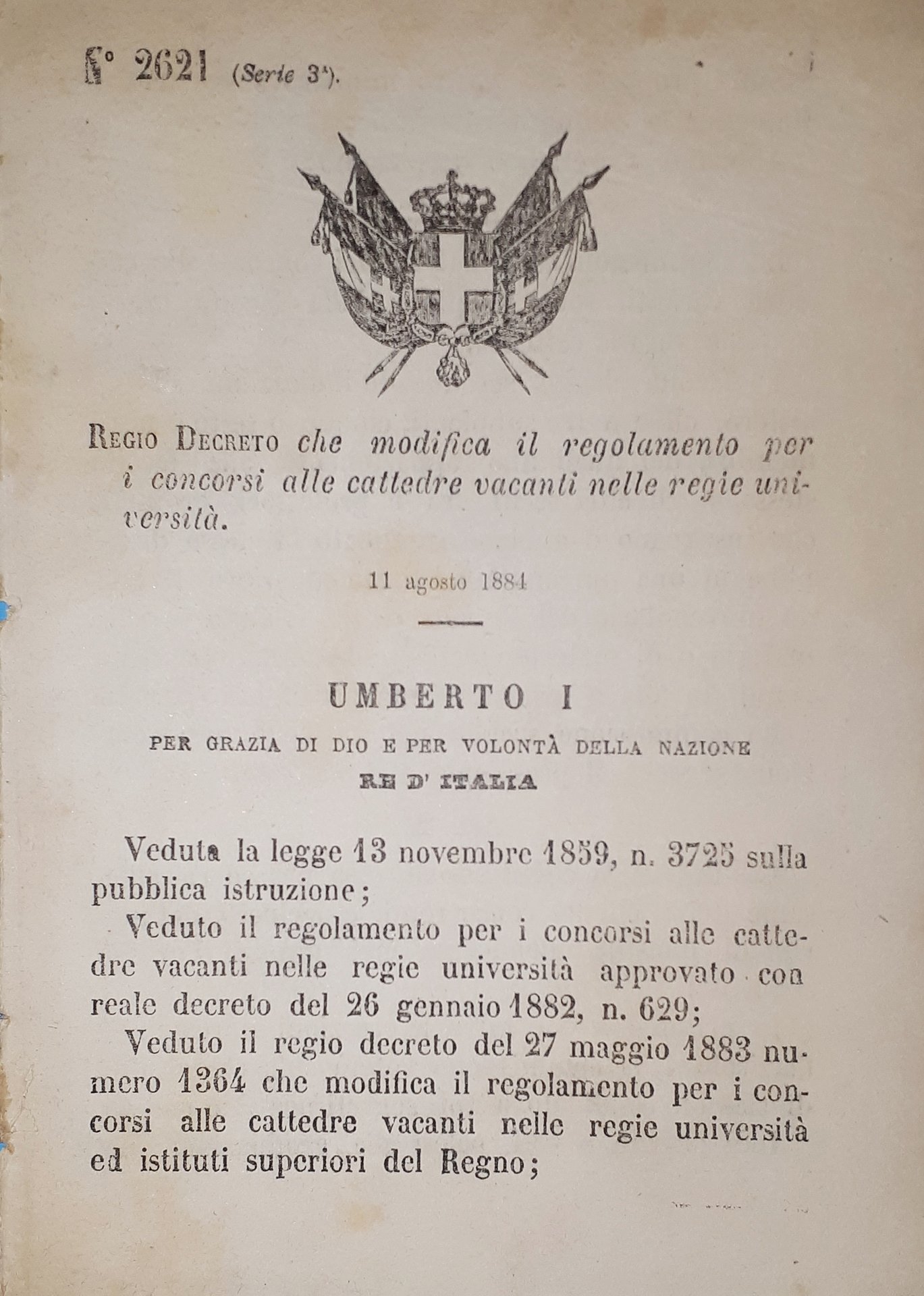 Decreto Regno Italia Concorsi alle cattedre vacanti nelle regie università 1884