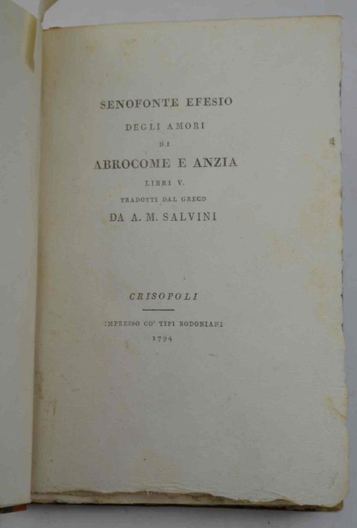 Degli amori di Abrocome e Anzia. Libri V. Tradotti dal greco da A. M. Salvini.