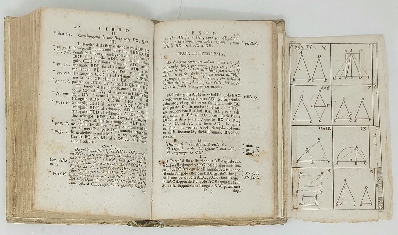 >in-8, pp. (8), 264, legatura coeva in pergamena (restauri alle cuffie e al dorso), entro astuccio. Con antiporta inciso da Strina raffigurante i tondi delle varie discipline alla sommità delle quali si pone la teologia disponendosi in una sorta di suggestiva piramide della Conoscenza, ove ogni Arte e' illustrata con i suoi simboli, di carattere ermetico; al titolo e alla fine della dedica preliminare ritratti di Euclide e Achille, con 11 tavole geometriche f.t. alcune delle quali arricchite da animali e motti, raffiguranti curiose metafore del sapere. Insieme all'opera di Archimede e di Apollonio, gli ''Elementi'' di Euclide costituiscono la più alta espressione del periodo aureo della matematica greco-alessandrina; e questa scienza, fino allora considerata uno degli aspetti della filosofia, per la prima volta acquista con Euclide una propria indipendenza. Esemplare con fioriture di curiosa edizione, con riletture esoteriche, dell'opera del celebre matematico.