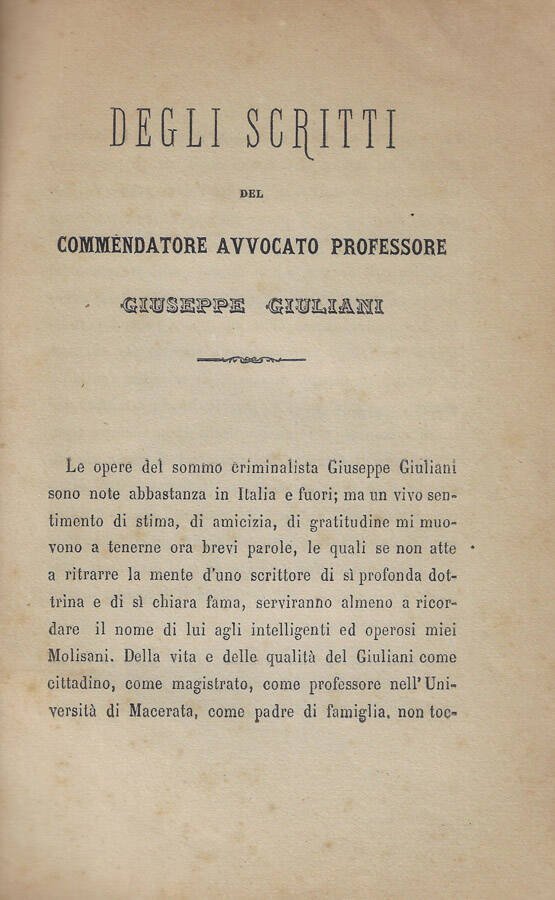 Degli scritti del Commendatore Avvocato Professore Giuseppe Giuliani