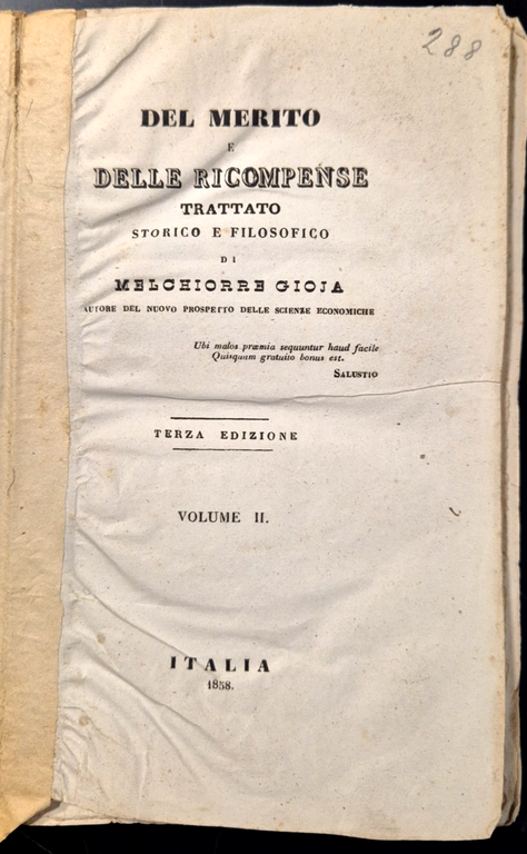 DEL MERITO E DELLE RICOMPENSE trattato Di Melchiorre Gioia VOLUME 2 1858 libro