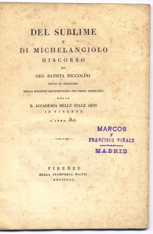 Del Sublime e di Michelangiolo. Discorso letto in occasione della solenne distribuzione dei Premi Triennali nella Reale Accademia delle Belle Arti in Firenze.