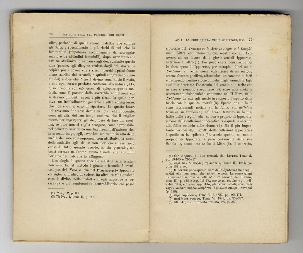 Delitto e pena nel pensiero dei greci. Studi su le concezioni antiche e confronti con le teorie odierne. Con prefazione del prof. Biagio Brugi.