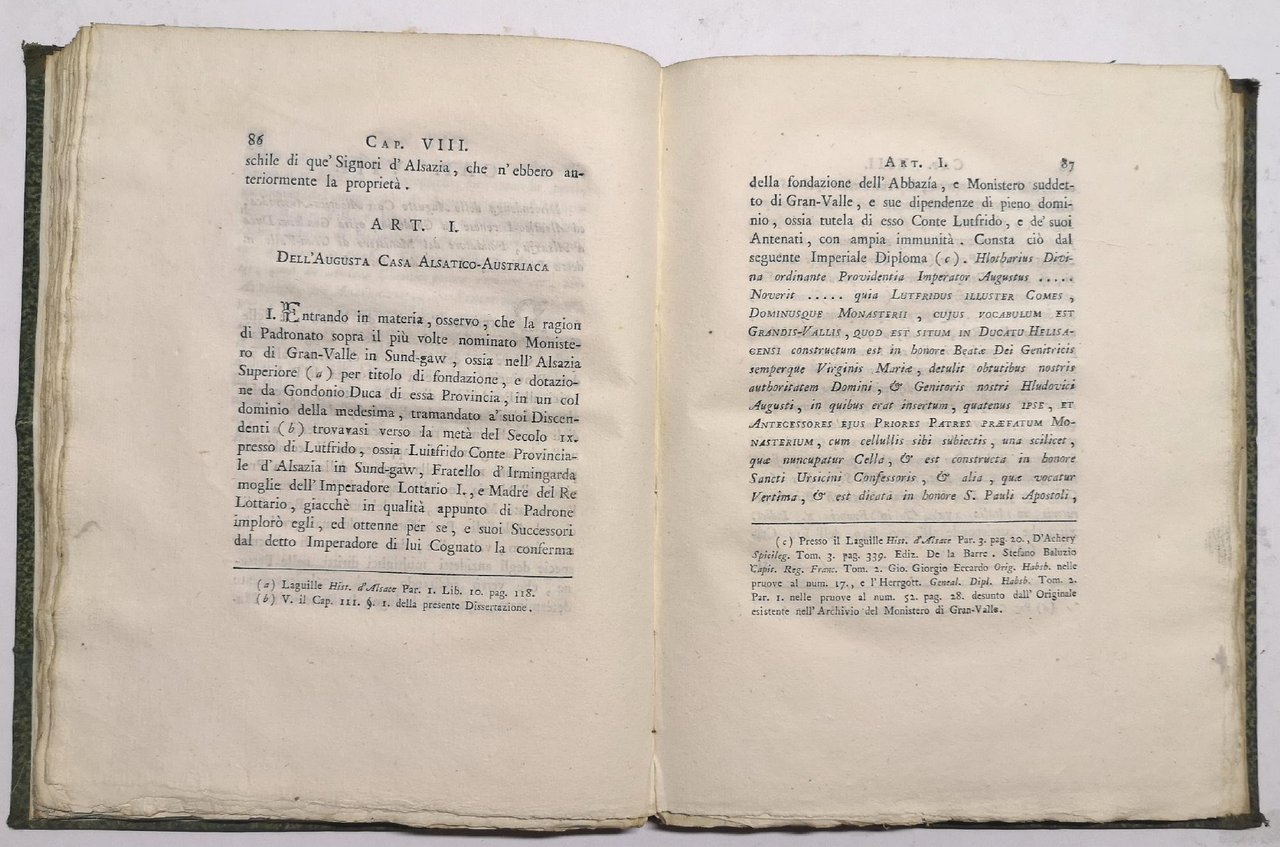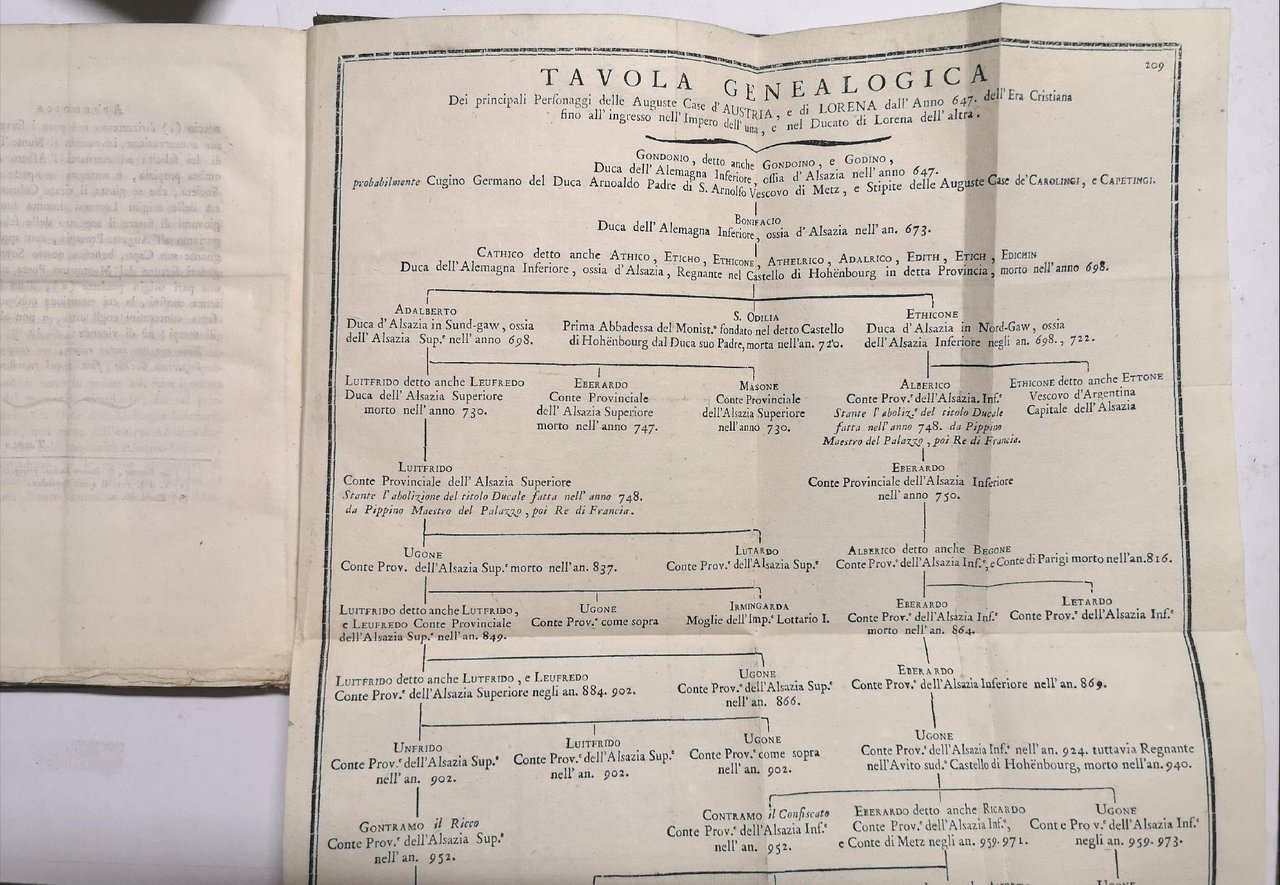 >in-4, pp. XVIII (di proemio e indice), 209, infine una carta genealogica più volte ripiegata. Legatura ottocentesca in m. pelle verde, titolo e filetti in oro al dorso. Edizione originale, rara. Esemplare ottimo, fresco, a pieni margini e in barbe.