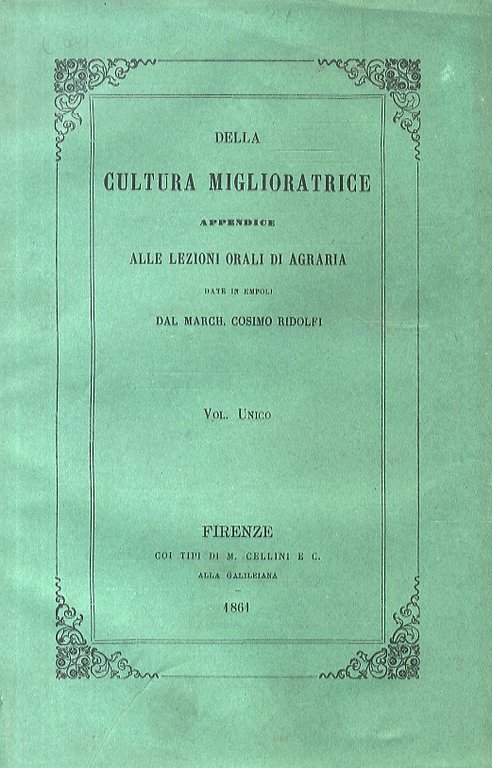 Della cultura miglioratrice. Appendice alle Lezioni orali d'agraria, date in Empoli.