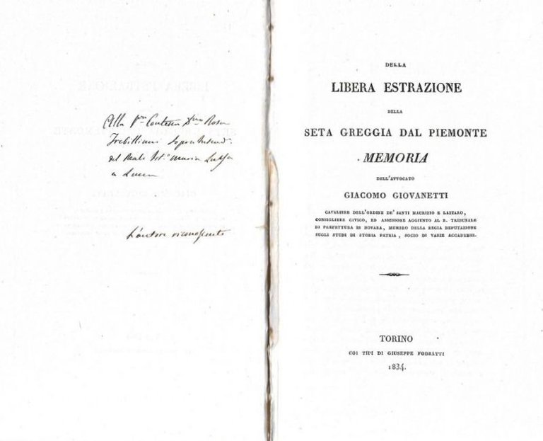 Della libera estrazione della seta greggia dal Piemonte (memoria).