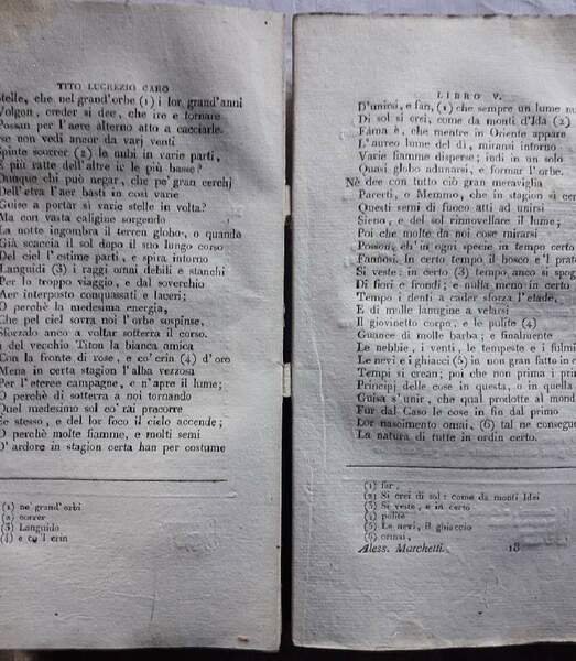 DELLA NATURA DELLE COSE-LIBRI SEI TRADOTTI DA ALESSANDRO MARCHETTI(1813)