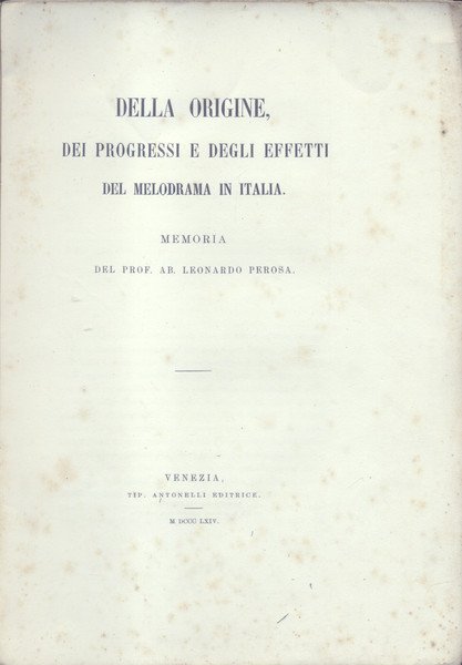 DELLA ORIGINE, DEI PROGRESSI E DEGLI EFFETTI DEL MELODRAMMA IN ITALIA. Memoria.