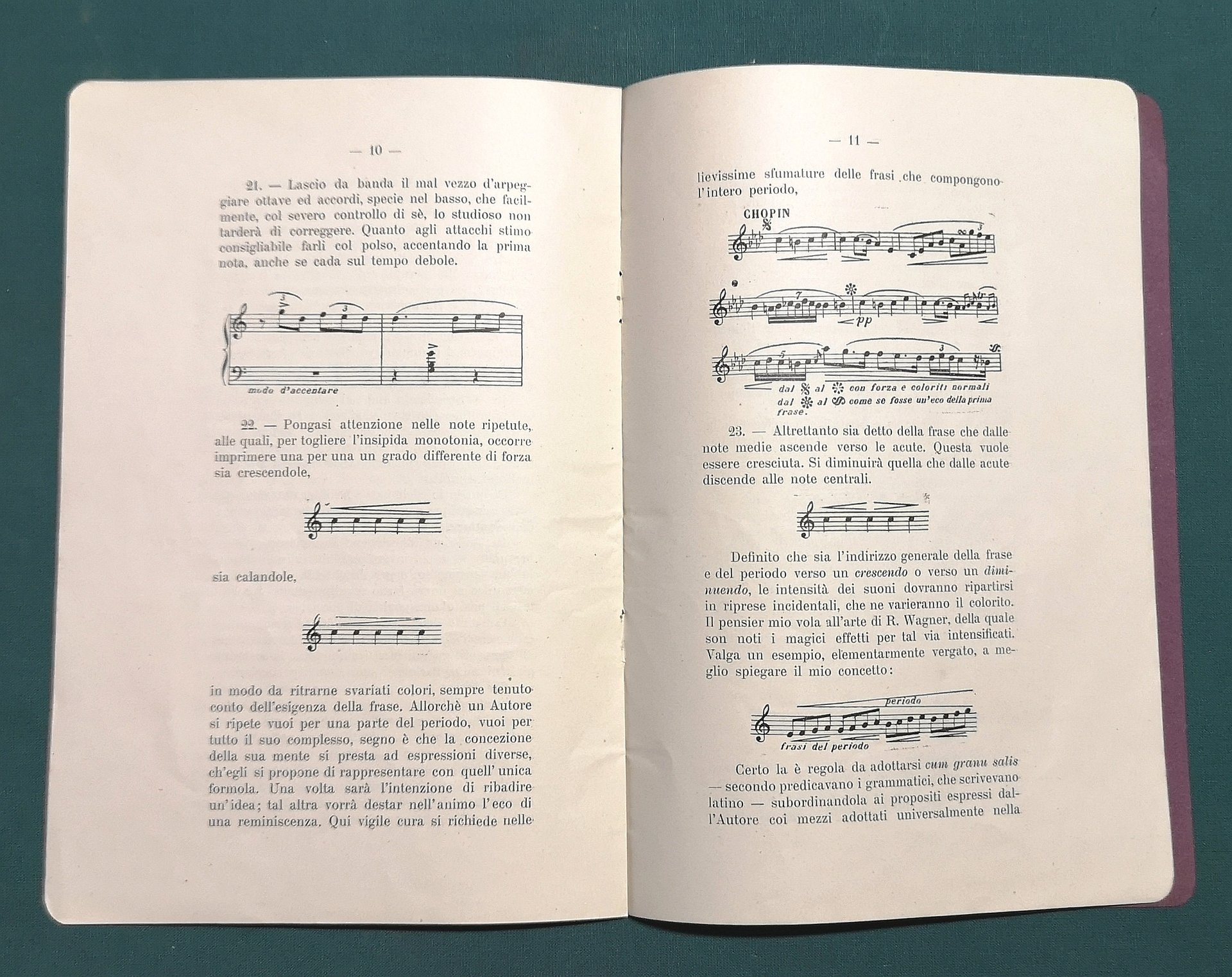 >in-8, pp. 14 con alcune fig. di notazione musicale, broch. edit. Edizione originale, scritta dall'Autrice in occasione del Congresso musicale didattico, tenutosi a Milano nel 1908. Rarissimo opuscolo di tecnica e interpretazione pianistica. L'A. fu pianista e compositrice di successo. Esemplare perfetto.