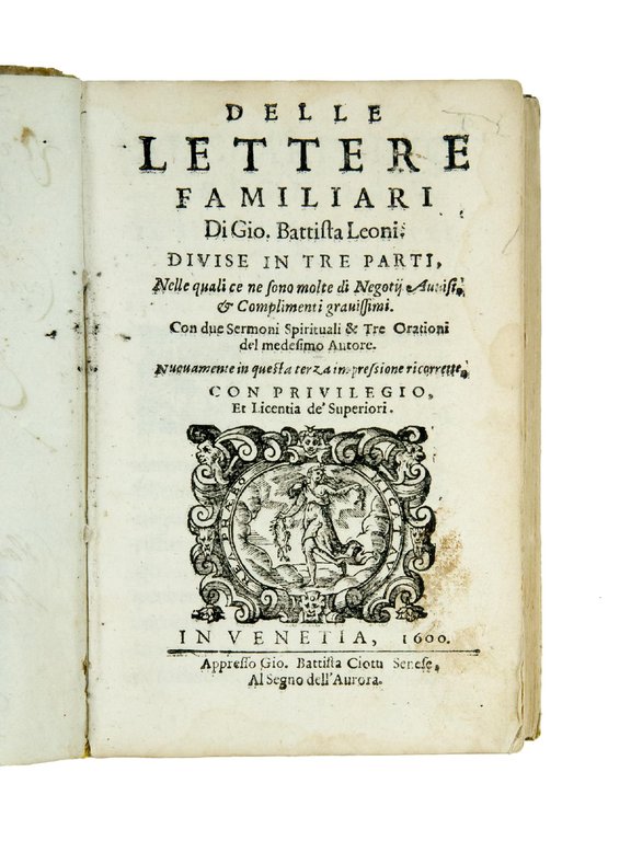 DEFINITIVE EDITION, containing all three parts, of Giovanni Battista Leoni's letters. The first part had appeared in 1592, the second together with the first in 1593, and the third part alone in 1596. They were all published at Venice by Giovanni Battista Ciotti.