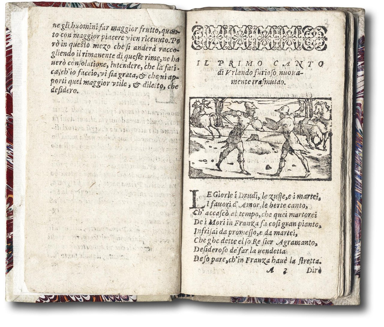 >in-12 (135 x 80 mm), pp. 68, (4), impresa editoriale al frontespizio e al colophon, testatine in silografia; legatura in mezza pergamena e angoli, piatti in carta decorata, titolo in oro su tassello al dorso, sempre decorato in oro. Seconda edizione di questa rarissima raccolta di testi in dialetto veneziano. Secondo il Gamba (Poeti antichi del dialetto) "Tutte queste edizioni sono oggidì divenute assai rare, e contengono componimenti innocui e gentili, ed altri non pochi imbrattati di oscenità. Resta ignoto l'Autore, e quantunque dal frontispizio del libro apparisca che più d'uno v'abbia avuto parte, ciò non ostante dopo una ponderata lettura noi incliniamo a credere che le varie poesie appartengano ad un ingegno unico e solo". In effetti, non si hanno notizie dell'autore, che nel suo avviso ai lettori prometteva una seconda e una terza parte. Questa prima parte fu peraltro l'unica pubblicata. Gamba, pp.87-88.