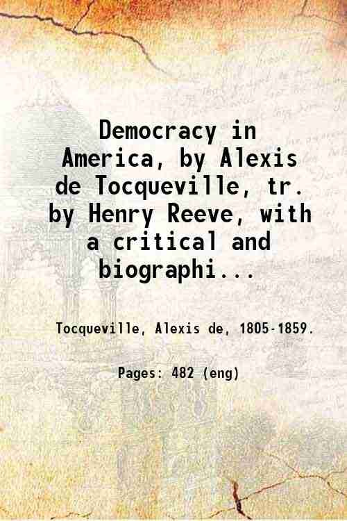 Democracy in America, by Alexis de Tocqueville, tr. by Henry Reeve, with a critical and biographical introduction by John Bigelow. Volume 1 1904