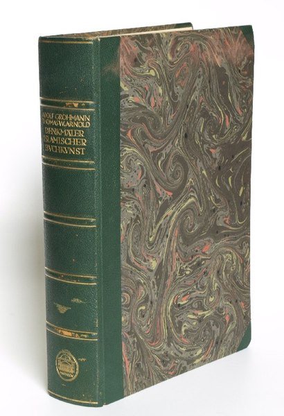 Folio (240:320 mm). XII, (4), 142, (4) pp., 104 plates. With numerous printed and photographic illustrations in the text. Contemp. green marbled half leather with giltstamped title to spine. Upper edge gilt. First edition; unnumbered copy. Meticulously produced standard work on Islamic book art, of which 375 numbered copies were issued. Part one by Adolf Grohmann, based on the famous collection of Archeduke Rainer (today in the Austrian National Library), covers the early Islamic period from the 7th to the 12th century. Part two by Thomas W. Arnold covers the 13th to the 18th century, arranged by regions. - Occasional slight brownstaining and foxing to lower edge; spine insignificantly scuffed. Altogether a fine copy. The English edition, published simultaneously with the German, sold for £2,600 at Sotheby's (Oct 14, 1999, lot 53: Burrell copy). - OCLC 13055751.