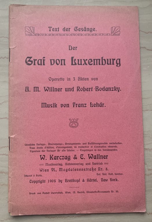 Der Graf von Luxemburg. Operette in 3 Akten. Text der Gesänge. | Rare and modern books | Willner, A. M./Willner, Alfred Maria und Bodansky, Robert: Ope, ,Willner, A. M./Willner, Alfred Maria und Bodansky, Robert: Op