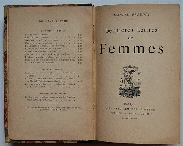 Lemerre Editeur, 1897. In-16, mezza pelle, titolo oro al dorso, pp. 298. Sono conservate le brossure originali. In buono stato.
