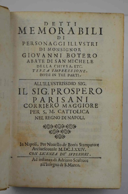 Detti memorabili di personaggi illustri... Terza impressione divisa in tre parti.