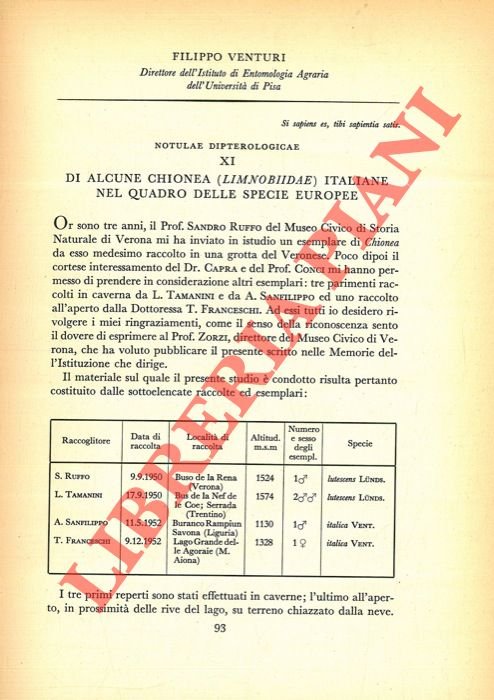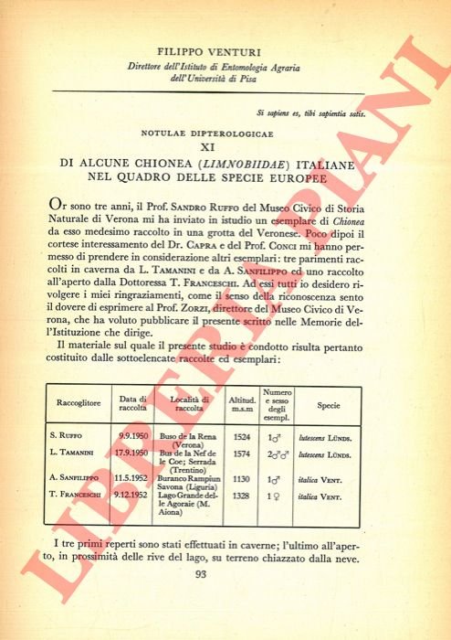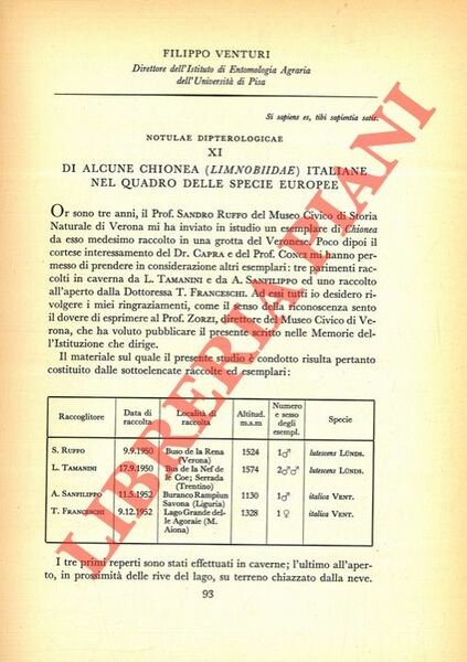 Di alcune Chionea (Limnobiidae) italiane nel quadro delle specie europee.
