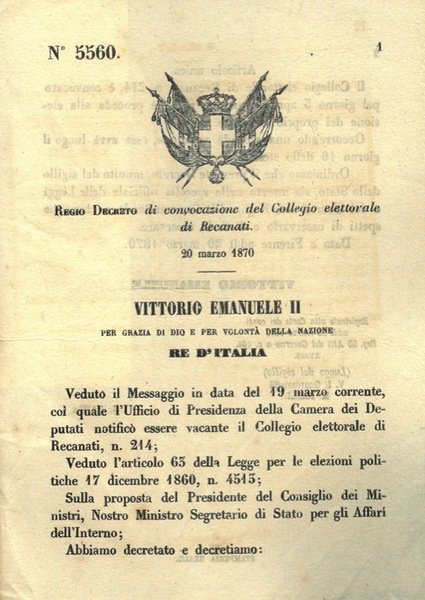 di convocazione del Collegio elettorale di Recanati.