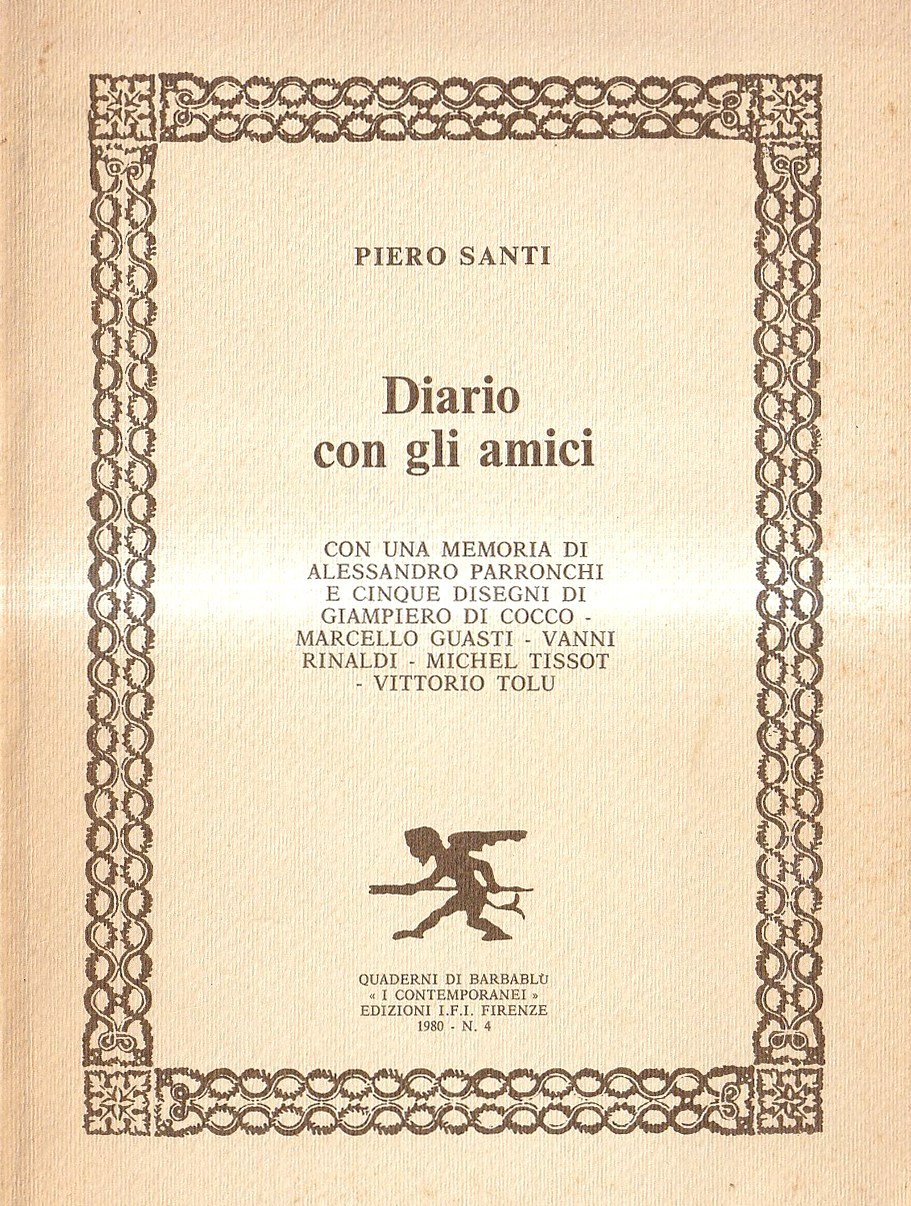 Prima edizione in supplemento al n. 19/20 del quadrimestrale di poesia 'Salvo Imprevisti' - Brossura editoriale di 49 pagine. Con una memoria di Alessandro Parronchi e cinque disegni di Giampiero Di Cocco, Marcello Guasti, Vanni Rinaldi, Michel Tissot, Vittorio Tolu. Dorso e margini un poco bruniti, peraltro opera in ottimo stato di conservazione. RARO