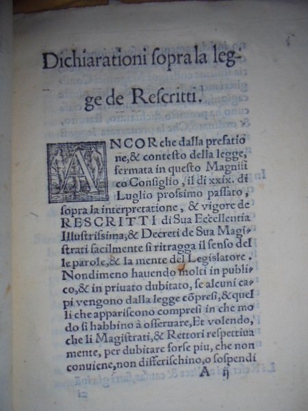 DICHIARATIONI sopra la legge de Rescritti di Sua Eccell. Illust. et decreti de sua Magistrati