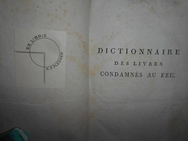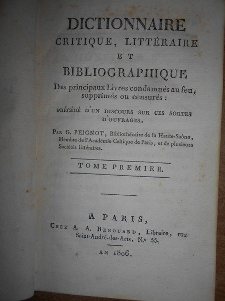 DICTIONNAIRE critique, littéraire et BIBLIOGRAPHIQUE Des principaux Livres condamnés au feu, supprimés au censurés: précédé d' un discours sur ces sortes d' ouvrages