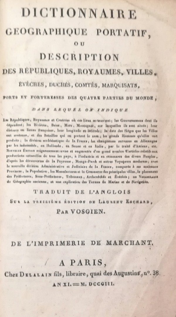DICTIONNAIRE GEOGRAPHIQUE-PORTATIF