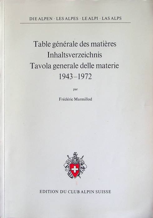 Die Alpen: Inhaltsverzeichnis, Band XIX-XLVIII (1943-1972) = Les Alpes: table générale des matières pour les tomes XIX à XLVIII (1943-1972) = Le Alpi: tavola generale delle materie per i volumi XIX-XLVIII (1943-1972).