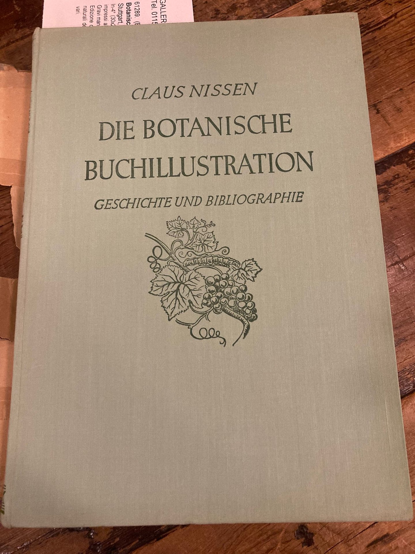In-4° (30x22 cm), pp. VII (1) 264; (8) 324, tela rigida editoriale verde con titoli e fregi fitomorfi impressi al dorso e al piatto anteriore, ripetuti alla sovracoperta figurata. 17 figure b/n nel testo. Gravi mancanze alla sovracoperta peraltro ottimo esemplare. Edizione originale di bibliografia novecentesca di riferimento censente 2387 volumi di scienze naturali dedicati alla botanica preceduti da una puntuale storia della botanica a stampa. Indici vari.
