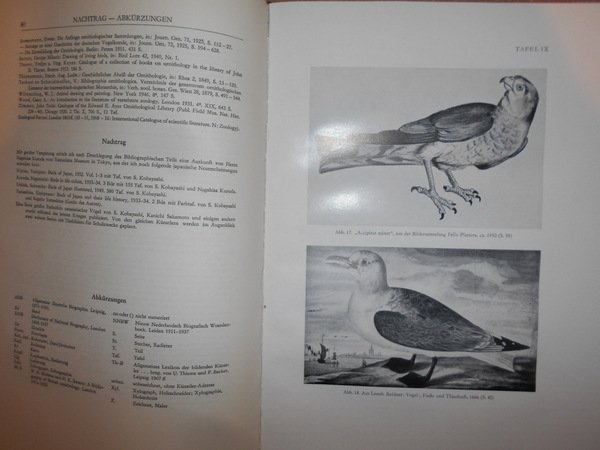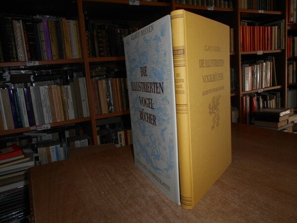 Clauss Nissen. Stuttgart, Hiersemann Verlag, 1953. Die illustrierten Vogelbücher: ihre Geschichte und Bibliographie. In-4°, tela gialla con titoli sul piano e al dorso, sovracopertina ill. a col. 222, (1). pp. con alcune illustrazioni n.t. e XVI tavole f.t. Perfetto esemplare in edizione originale. Uff. C - II - 1