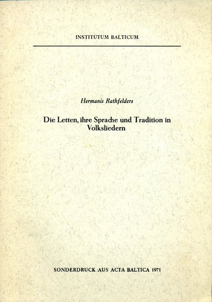 No marks or inscriptions. No creasing to covers or to spine. A very clean very tight copy with bright unmarked boards and no bumping to corners. 177-234pp. Reprint from Acta Baltica. Language and tradition in folk songs from Latvia.