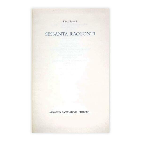 Autore: Dino Buzzati Titolo: Sessanta racconti Edizione: Arnoldo Mondadori Editore 1973 Dimensioni: 13 x 20,5 cm c.a. Pagine: 563 Copertina: Cartonato Condizioni: Ottime come da foto