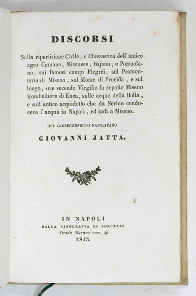 Discorsi sulla ripartizione civile, e chiesastica dell'antico agro Cumano, Misenese, Bajano, e Pozzuolano, sui famosi Campi Flegrei, sul promontorio di Miseno, sul monte di Procida, e sul luogo, ove secondo Virgilio fu sepolto Miseno trombettiere di Enea, sulle acque della Bolla, e sull'antico aquidotto che da Serino conduceva l'acqua in Napoli, ed indi a Miseno.