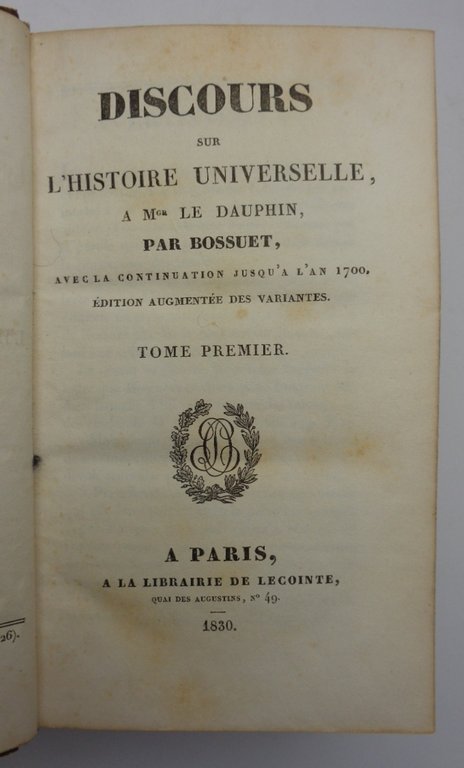 DISCOURS SUR L'HISTOIRE UNIVERSELLE, a Mgr le Dauphin, avec la continuation jusqu'a l'an 1700. Edition augmentée des variantes.